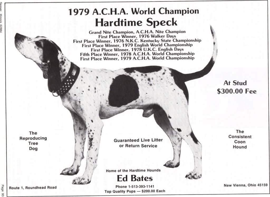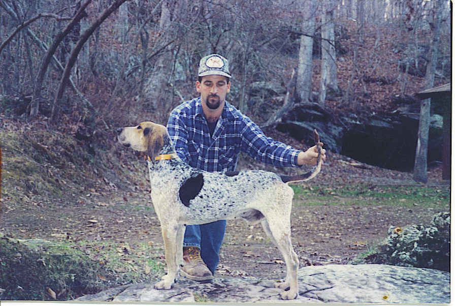 Dino and his pups speak for themselves. He has a lot of nice dogs showing up off of him in the winner's circle with more on the way. I raised and trained the momma to these pups, and she is a nice big tri-colored female. She has a loud mouth, uses it conservatively on the ground, has a head full of sense, is a strong hunter, and a hard tree dog that is good about having the coon. She has a lot of the old Hardtime Speck breeding behind her (Speck shows up 17 times in 7 generation ped). Her current owner John Kirkland and I made this cross to concentrate up on that winning Nichols' Tree Spike blood.