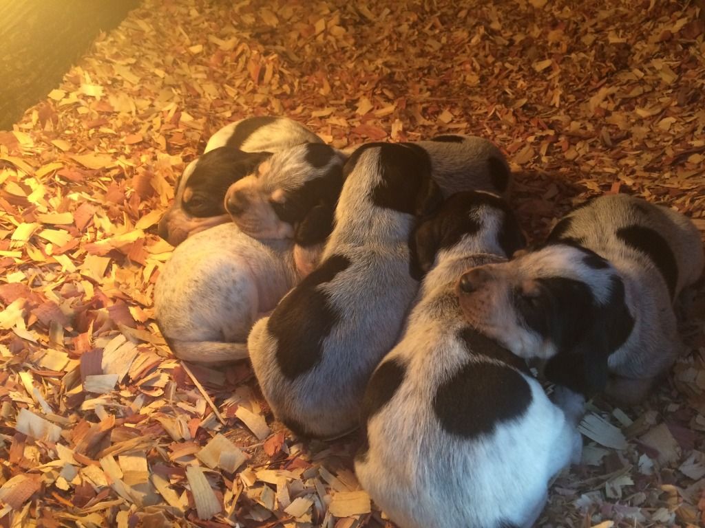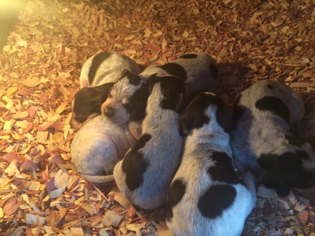 Ten pups just born today off of Gr. Nite Ch. Main Street Dino HTX and Gr. Ch. Bagley's Briarhoppin' Bluebird. Pups will be $250, Performance and Super Staked.