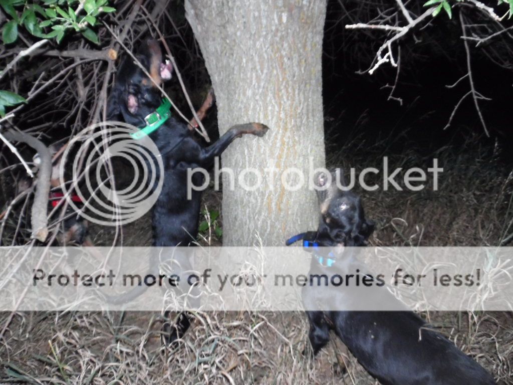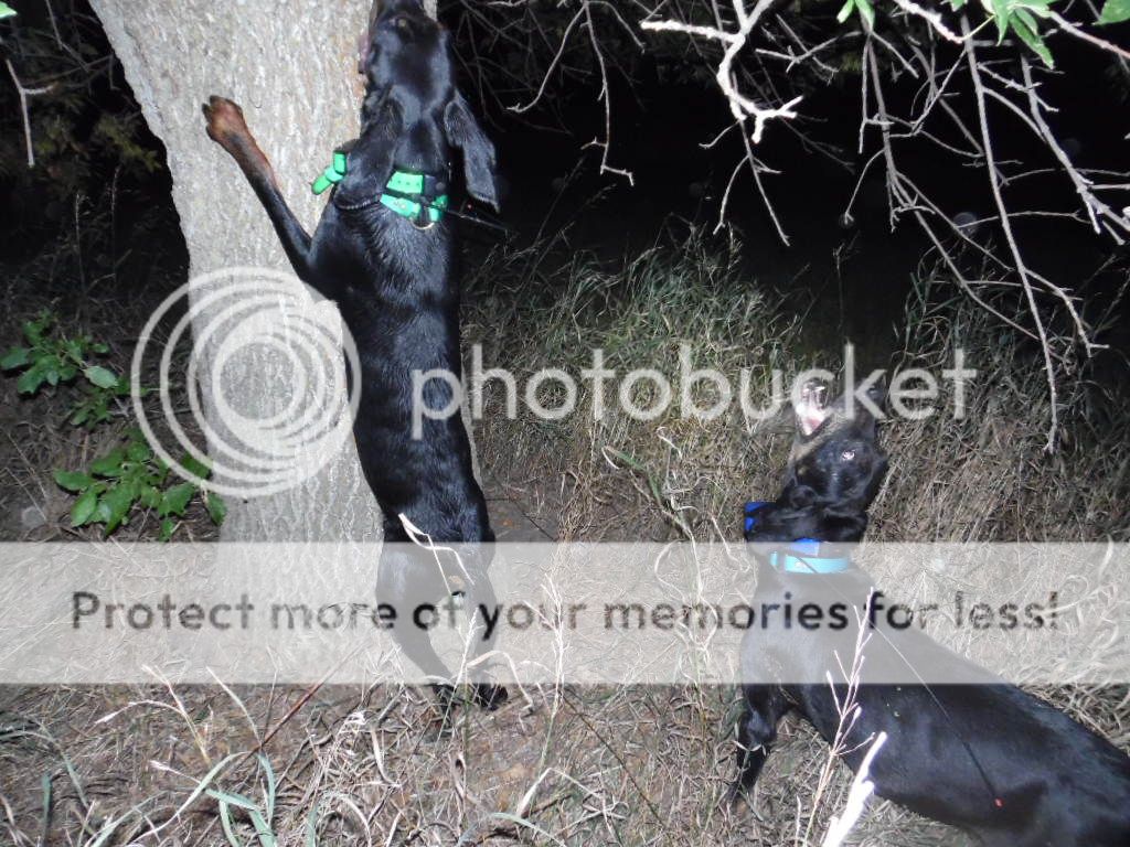 minns pups turned 6 weeks old and decided gotta get her out for real exercise. took her with trix and sky. first dump dogs were all around quarter mile out and minn was east of other two. sky struck bad track that her and trix ground out and got treed almost mile in with litter. minn came back to me and drove around and let old girl into tree. fired her old butt up. next run sky struck first again with all dogs running goofy track that crossed into open no mans land across road then back to woods and treed with litter. mama dog redeemed herself. heading home got couple rigs where didnt want to dump then a third where could dump. treed 75 yds from where dumped with single right in road ditch. now thats my kind of run!