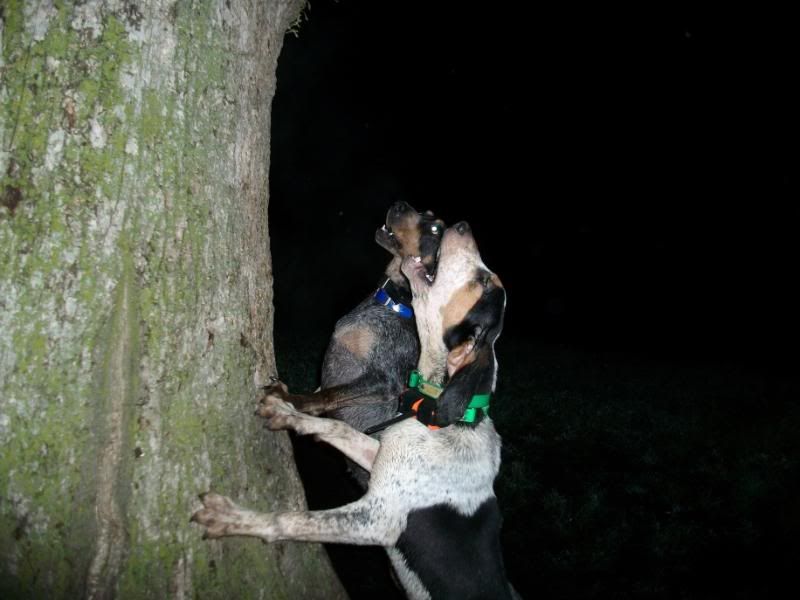 Here's one that will tree some of these ole sick woodlot coons now & again. She's not too bad for an ole bluetick biscuit eater.
