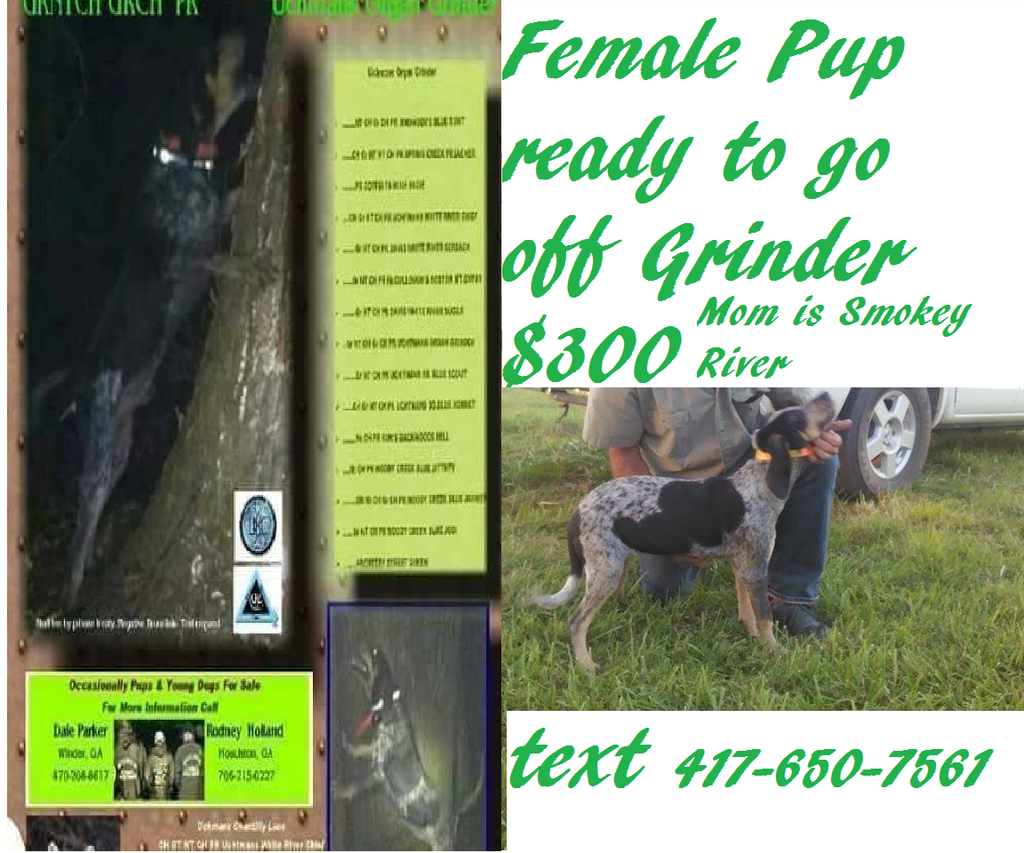 UKC Forums : Powered by vBulletin version 2.3.0 UKC Forums > UKC Free Classifieds > Coonhound Classifieds > Blueticks: Dogs and Puppies For Sale > female pup off Gr Nt Ch Utchman's Organ Grinder X Smokey River female