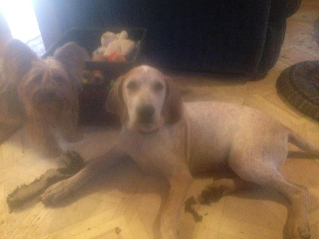 Willard's sire grntch PR Anderson's Lil Quigley (left) grch grntch PR Anderson's Lil teatop (right) and the sire of both hounds grch grntch PR Perry's timber rattlin copper