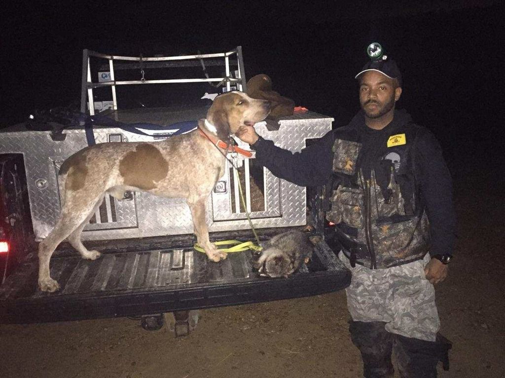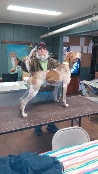 Ruger is a medium to wide hunter, a second or third strike dog and a first tree dog. He is not ill in any way but will not be run off a tree. He has a beautiful redtick color and good confirmation. Ruger is a dual Grand and can throw a three generation all grand pedigree. He has placed at some of the bigger hunts with one win coming at the Virginia state hunt and another coming at Southern English Days. Stud fee is $300. Located in District Heights, Maryland. If interested in breeding please, contact Louis Rogers at 202-438-4398 or 202-832-1088. Ruger's pedigree is as follows,