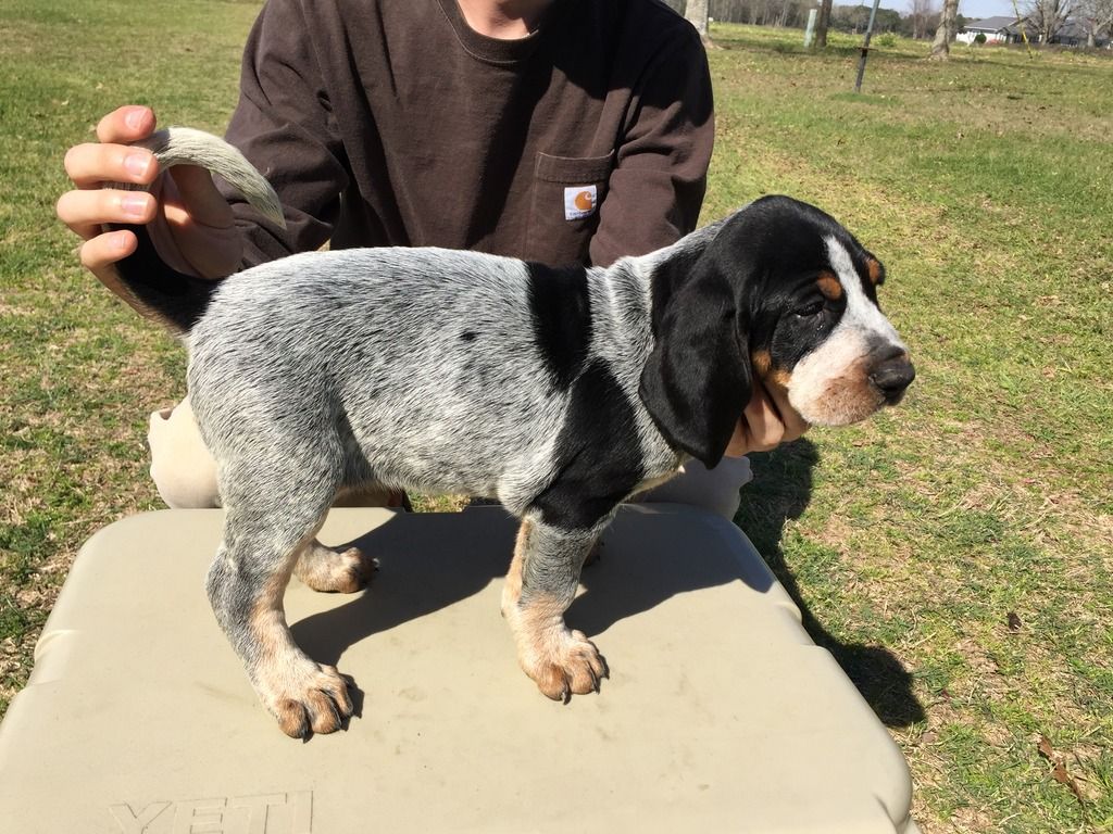 Had someone back out on a puppy, so I have one female left out of GRNITECH GRCH CB'S TREEIN BLU FROG x HOUND SOUNDS BLUE SAND STORM. She will be ready to go next weekend. This is the last pup left out of this litter and she will go fast. Southeast Alabama. $250. Call or text 334-791-6466.