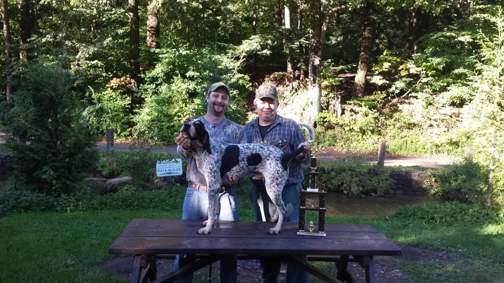 Thanks Bill. Like I said Kenny deserves all the credit for the titles. He's beat the bush and run up and down the hi ways and him and Duke have made a great team. Time will tell how he reproduces. We've got a male here now off him that I'm working with that's showing a lot of the right stuff at 6 months old. High hopes for him. Glad to hear you got Toby back. Would like to see him go. If all works out we'll be down to Freds sometime this fall. Maybe we can get together for a hunt.