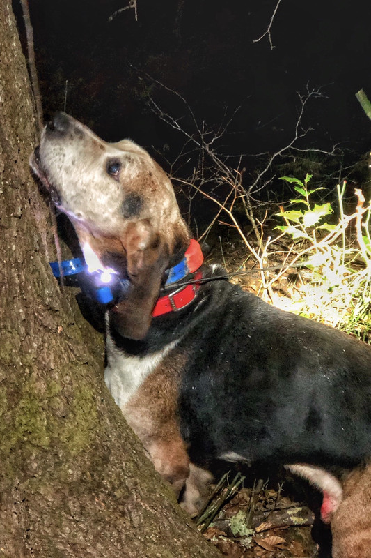 I’ve hunted Pride three times this season and he’s treed a coon on each trip. Each time I turn him loose I think this may be his last trip to the woods. I can’t say for certain that tonight was his last trip ever to the woods or not, IF he’s still in decent enough shape next Nov 2nd which is his birthday I’m pretty sure I’ll turn him loose and try my best to get him a birthday coon.