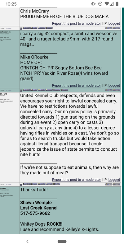 There is a post. "Who carries a concealed handgun" where UKC says it will never infringe upon a hunters right to carry concealed as long as they are properly permitted. That rule for no firearms is meant for firearms used to kill coon. Gun trading on club grounds, Unlawful carry, or open carry on a cast. I think UKC's response is on the 2nd or 3rd page.