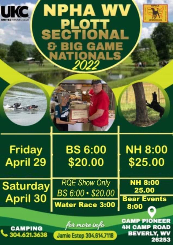 Congratulations to all winners and THANKS for supporting the WVa N.P.H.A. plott sectional / Big Game Nationals