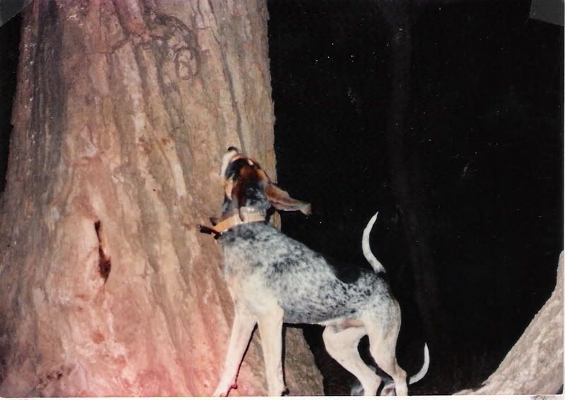 I have to say Sheba would be my favorite hound. Owned by a dear friend. Brain injury has taken memories away from me so I can't describe the hunts I followed her on. The thing I recall the most is the time spent with Shebas head in my lap as I babbled with her owner. She was all coon dgo in the woods and I was NEVER allowed to handle her in the woods. Out of the woods she was gentle and so loving. I couldn't handle her....I THINK... because her owner was afraid I'd ruin her Also the one thing I do recall, whether we were with Sheba or one of the other coonhounds I never went to a slick tree. Coon were abundent in MA in the 1970s and I just assumed a coondog didn't Stop till it found a coon...LOL... I was a bit surprised when I first came on this UKC forum after about 25years without coonhounds in my life... that they slick treed! Live and learn.......