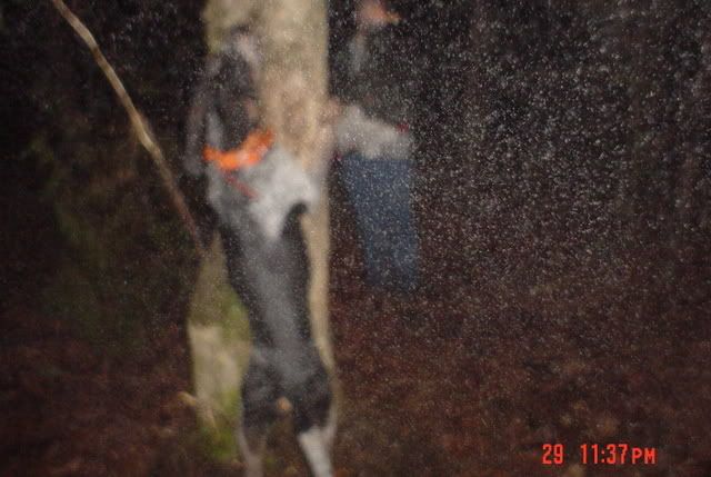 Boy lastnight was a ruff un. pouring down rain the whole time. AJ treed twice 1st tree den tree, 2nd he treed in thick pines.