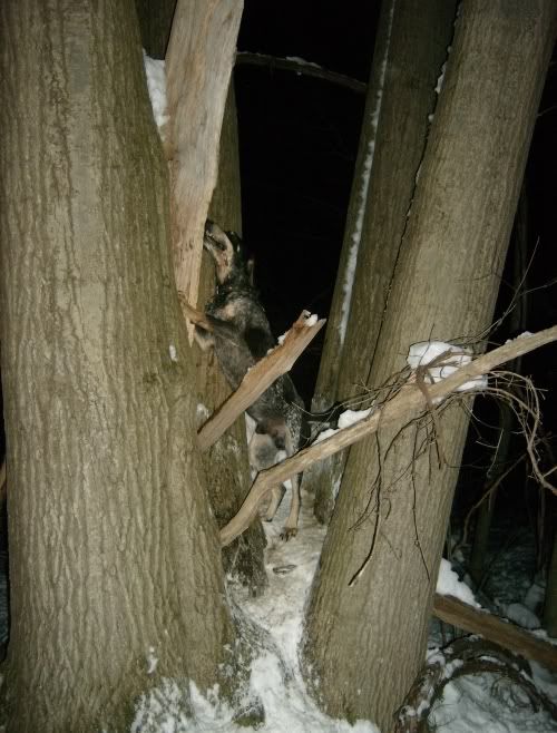We cut the dogs and they didn't do nothing. We saw where they had checked a big oak and really thought about treeing but then they left. We ended up calling them in and calling it a night after a half hour, snow was just too deep to do much. Might give it a go tonight though.