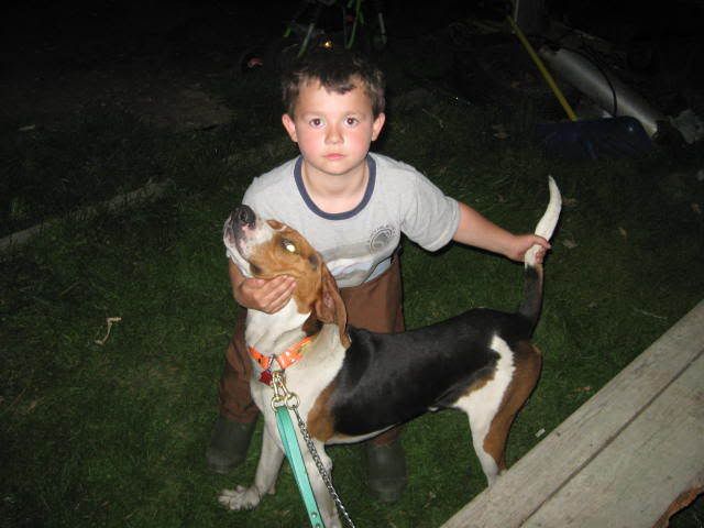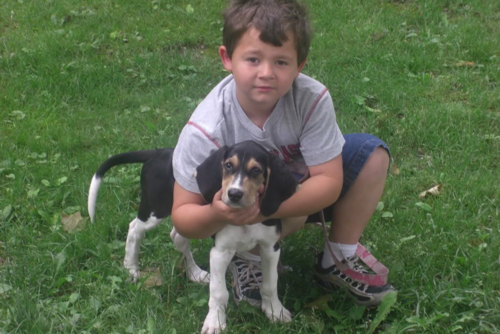 LOL.. I STILL can't get enough of this picture! I saved it yesterday on my comp. so i could email it to my husband. He got his email at home on his laptop so I got to see his reaction....It was awesome! He opened the pic and GRINNED! He absolutely LOVES kidsNdogs.... He grew up in a beagle kennel and handled Foxhounds(the kind used with horses) and coonhunted too(same dogs I hunted as a kid ).... Well, he was an unhappy little boy with parents who did not love him.... those beagles and the horses were the only things he had to live for most of the time... so when he sees kids and dogs it reminds him of the GOOD part of being a kid!