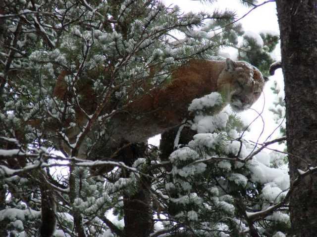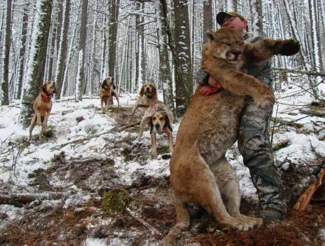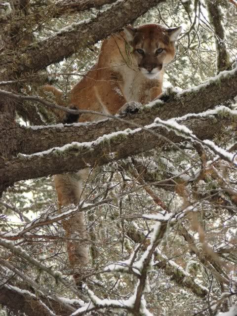 The lion only made it about 300 yards and was in a good tree this time. When we got there all the dogs were treeing good and we couldn't see anything wrong with the girls. We feel extremely lucky to have finished the hunt without any dead or busted up dogs. We're off tomorrow to look for another one. We might have a tough time topping this one.