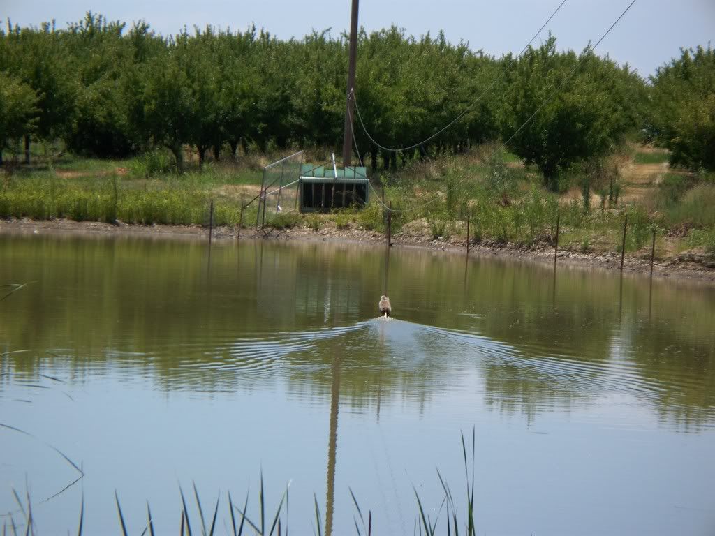 This is our pond out in No.Cal approx 350' long. A start box is the way to go it will make it fair for all, our field trails are 1,2,3 go hand release. good luck to you.