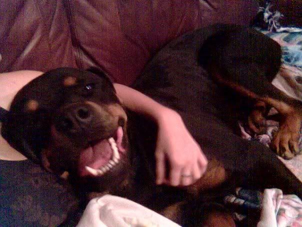 we had the family over for my G-ma's 70th b-day today and he ran around like a chicken w/ its head cut off cuz everyone would pet him a lil bit. it was funny he is a very gentle dog, the only time we have a problem is when he is running around and once in a while he'll run into you... its pretty funny