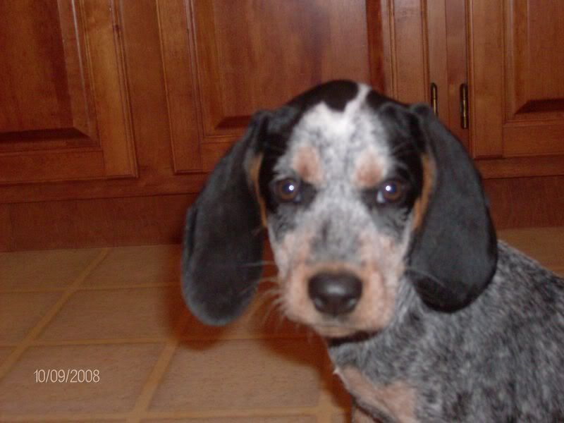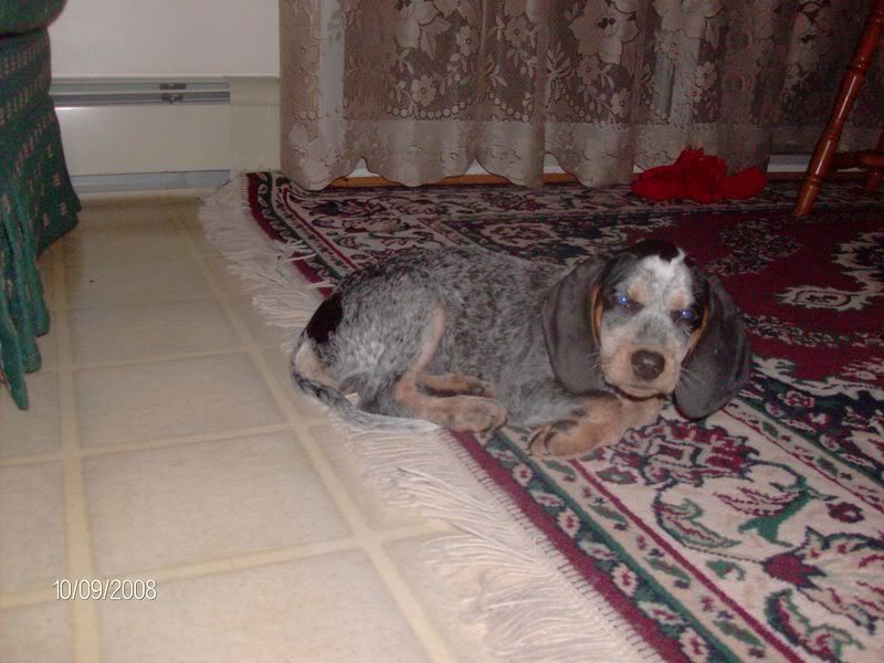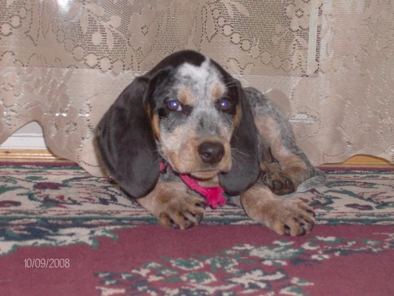 I just got a new female pup, just got her here the other day from Steve Kitchen. She is sired by GRNTCH B&D's Blue Spike and out of NTCH Twilites Blue Honey.