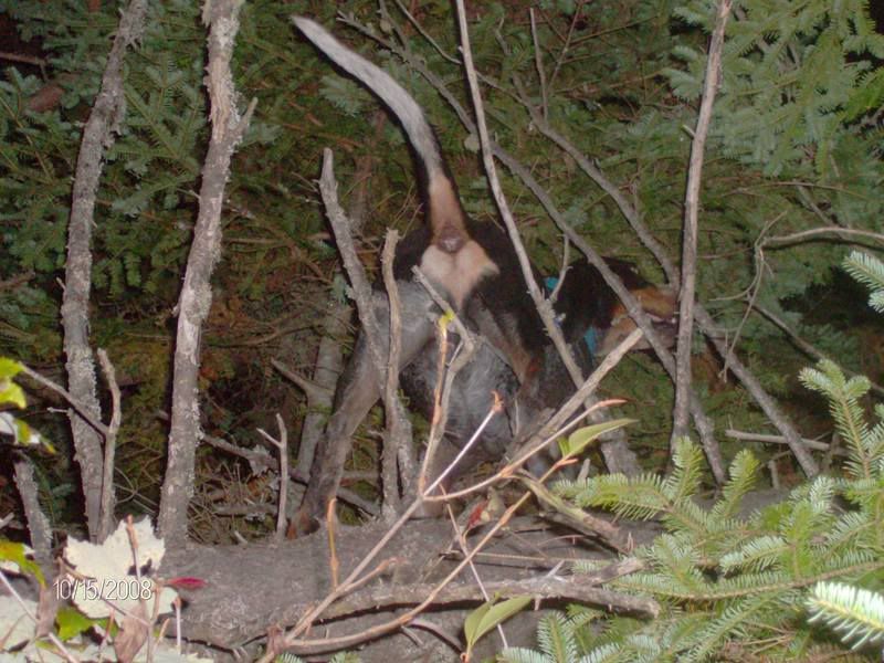First drop we droped Spice & Skye, Spice got struck and had a good run going in the corn Skye got in on the chase and they treed it. Next drop we droped Prancer, Spice & Skye, when Prancer struck he was lookign up, Spice & Skye treed in behind him, seen it. Last drop we droped the 3 again, ended up just picking all 3 up, only Spice got struck and it was getting late.
