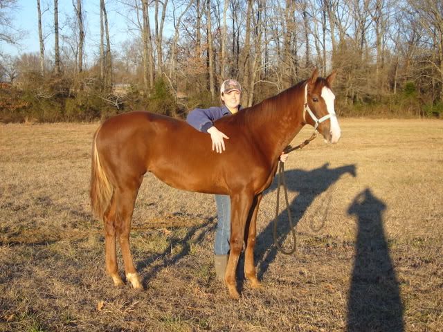 That's a pretty one, love the blaze. What is her breeding? Quarter horse, Arabian, T-bred......back forty mixer? Whatever is there looks right.