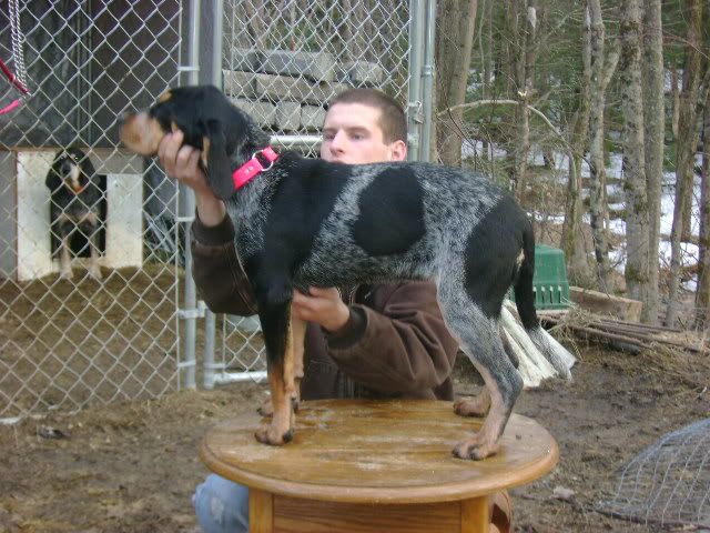 nice pup photo does not do her feet justice she has the best feet I have seen in awhile got her 1st look at a coon and did a fine job ........this cross is being made again pretty much as we speak!!!!!!!