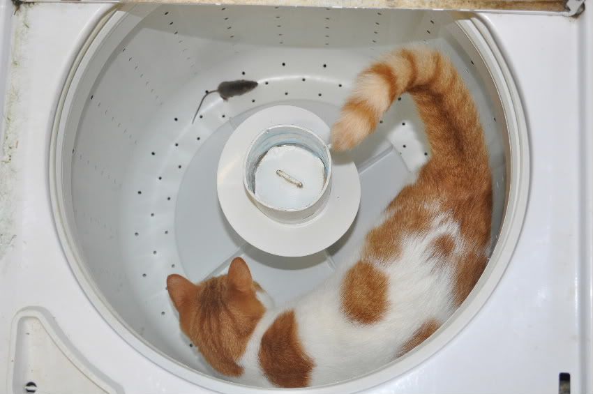 Wife found this Mouse in her Washer this morning and got one of her Kats to do the Hunting ...