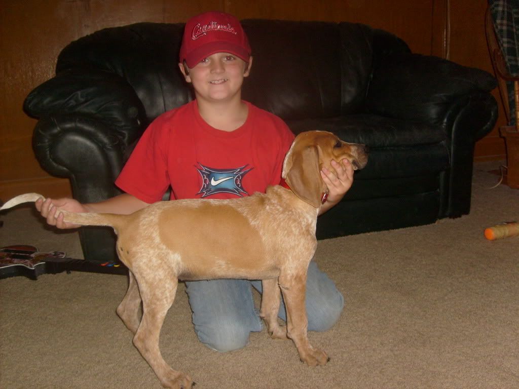 My son Cameron with his off colored pup 'PR' Devil's Creek Red Pep