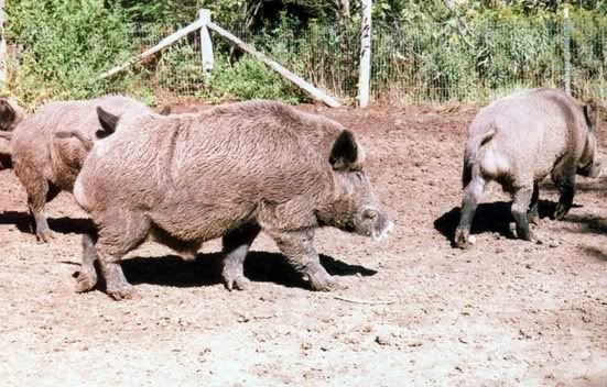 I forgot to mention that I raise pure bred Erasion boars for a hobby. We practice on them with our bear dogs. We don't throw many though. We quit as soon as the young dogs start to catch them. They are as tame as a domestic hog if they are raised in a pen. We do not have wild hogs up here. Occassionally some one sets some tame pen raised hogs free.