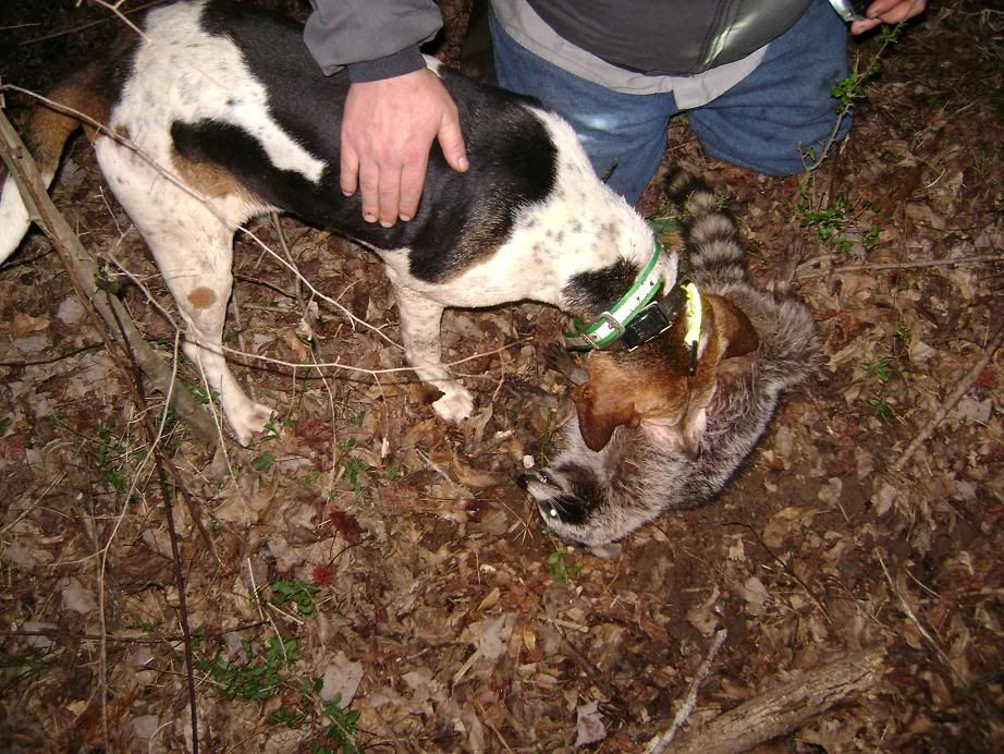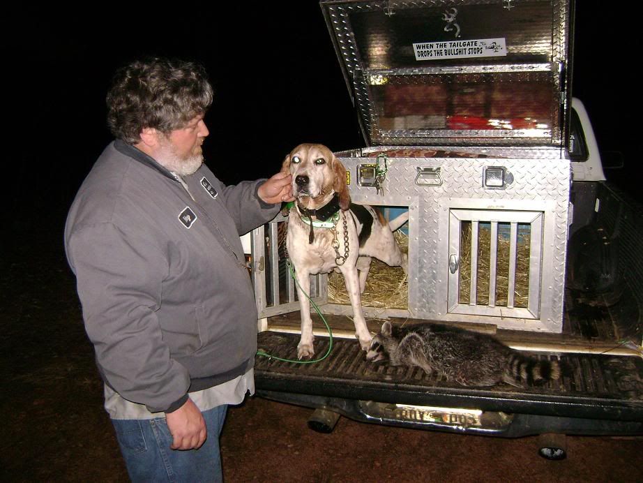 3 nights, 3 drops, 3 coons! Me and Ricky took Cassie tonight. Cut her loose on a little creek. She went about 600 yards or so and treed. Took us a little while to find em, but Ricky found em (lucky guess). lol...