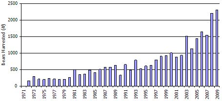 About 70 percent of the harvest occurs on private land. The DNR attempts to match hunters with farmers and other landowners who have had nuisance bears.
