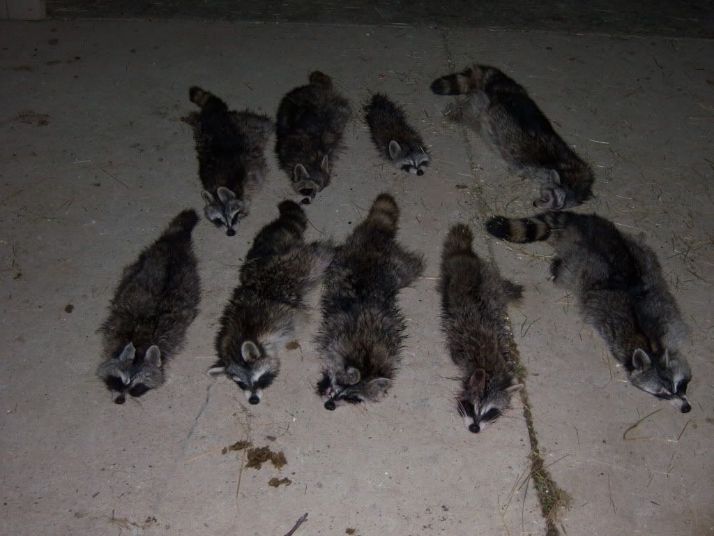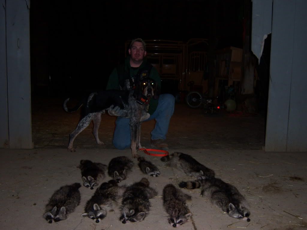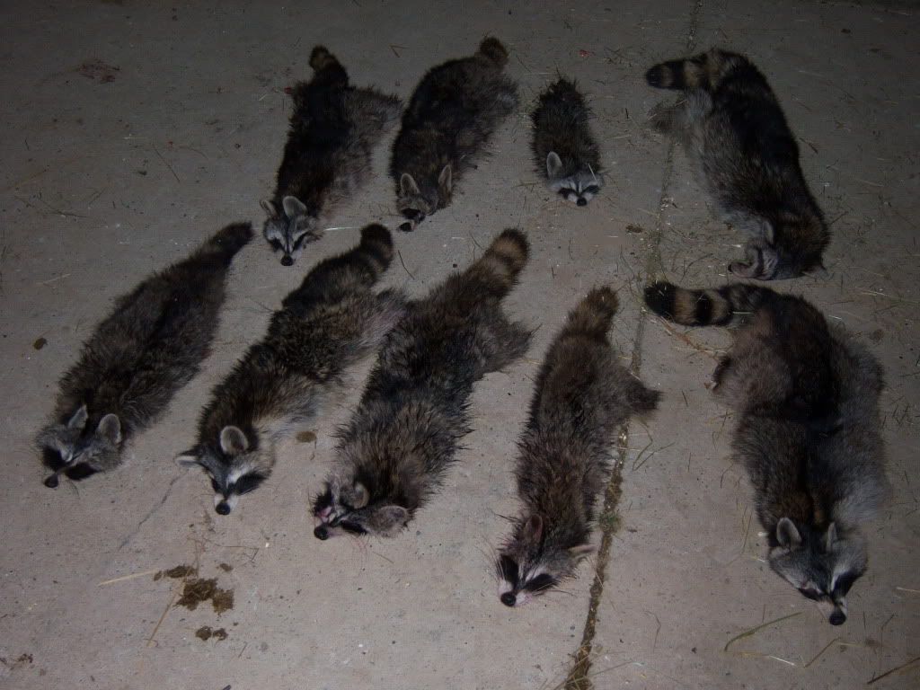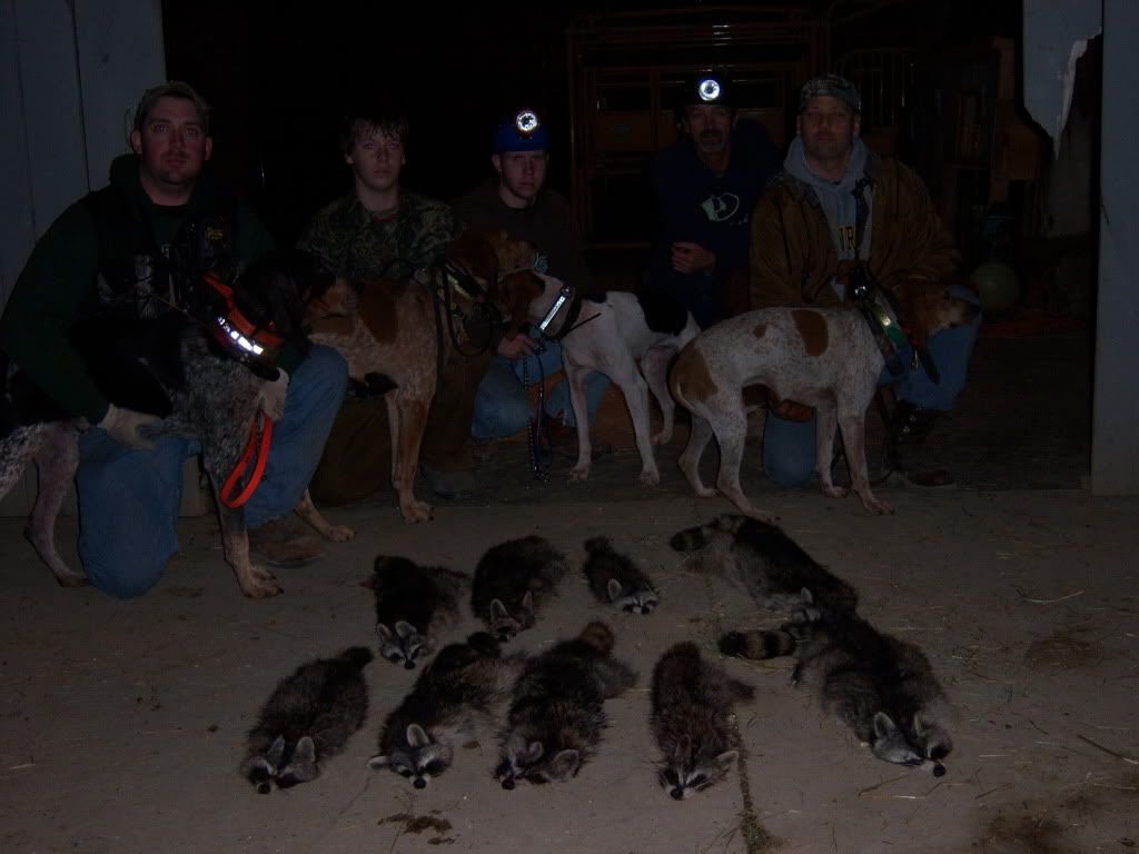 nice lot of coons and dogs guys. but, i have to ask, did you shoot the butt off the one that is on the top and third from the left? lol