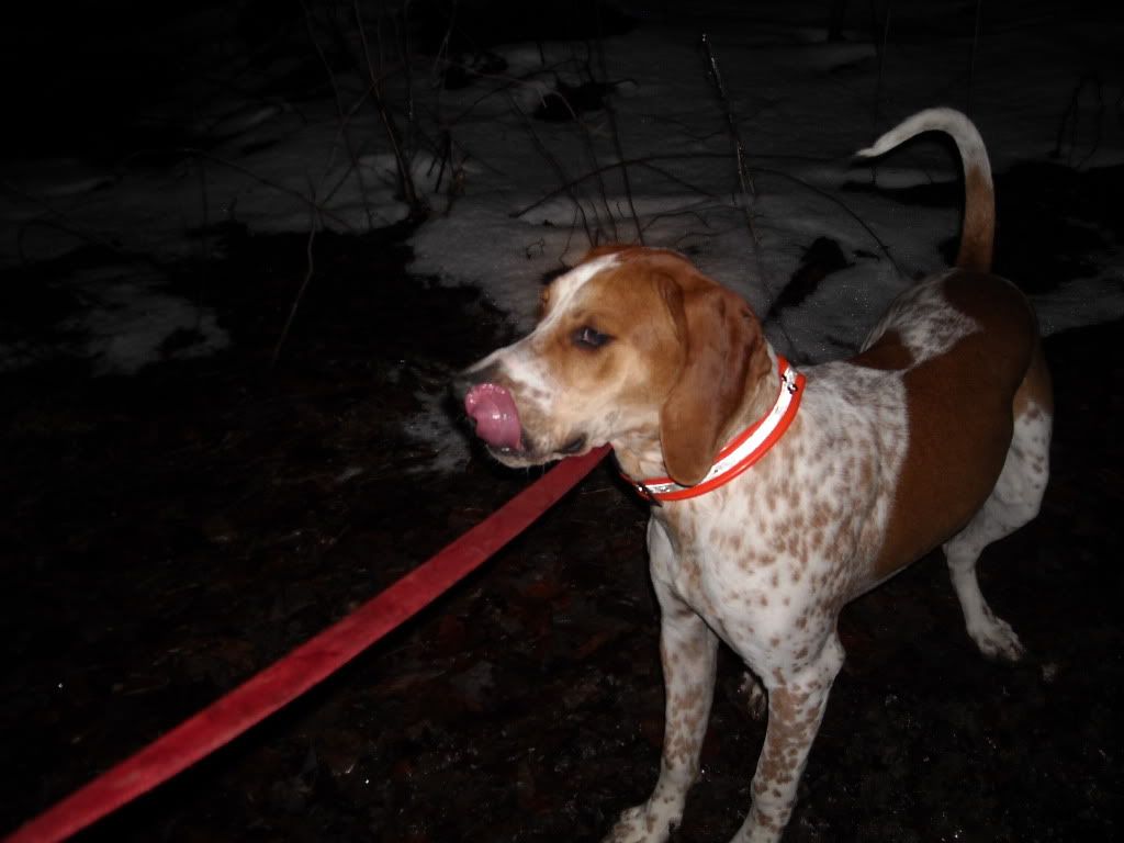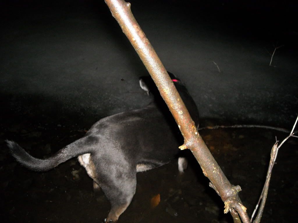so, i think it is better. somewhat, still hurts at a point. but, i want to take the dogs out. well, knee is alot worse. bit the dust cause i was holding onto the leash with skeet on it. skidded out of control and ended up wrapping the leash around a tree real quick like to keep him from runnin off. we went out back. there is a road about 300 yards to the south, and before that you got a house that has about 700 billlion feral cats . that is why he was kept on a leash. know i got coon, but , i just want him to learn some manners and listen somewhat. night or not. plus, i love him, and dont want him to get shot by the fly by night cat breeder.