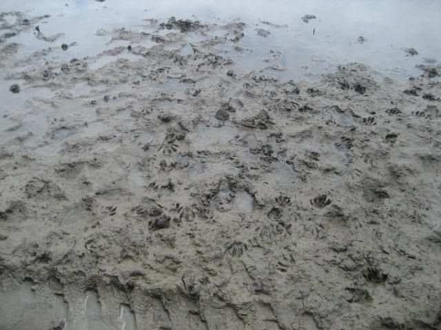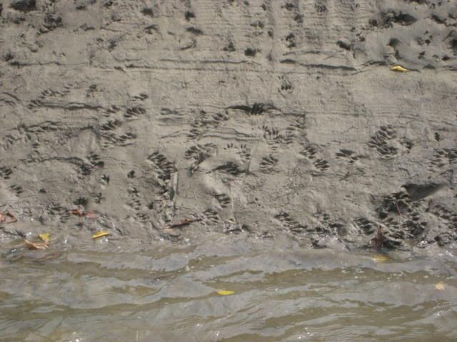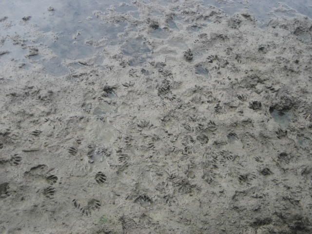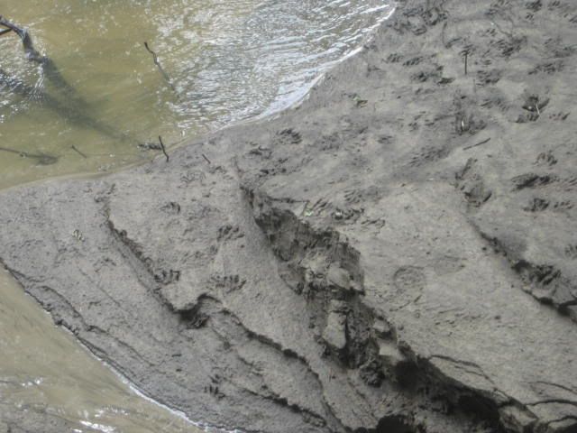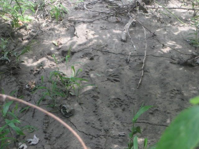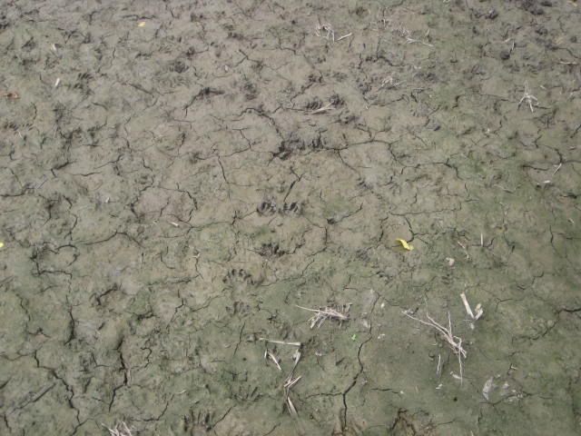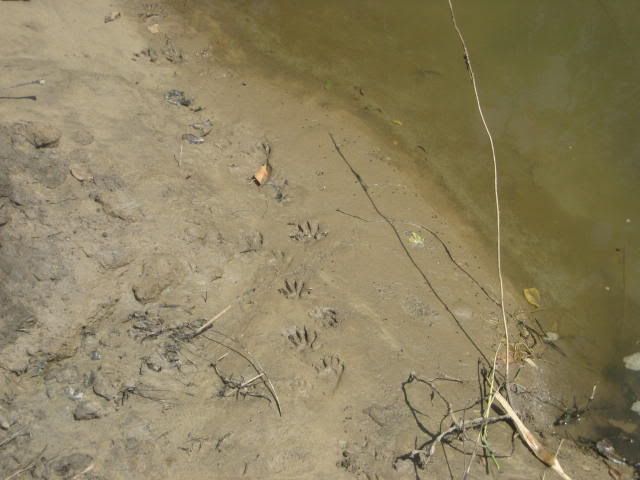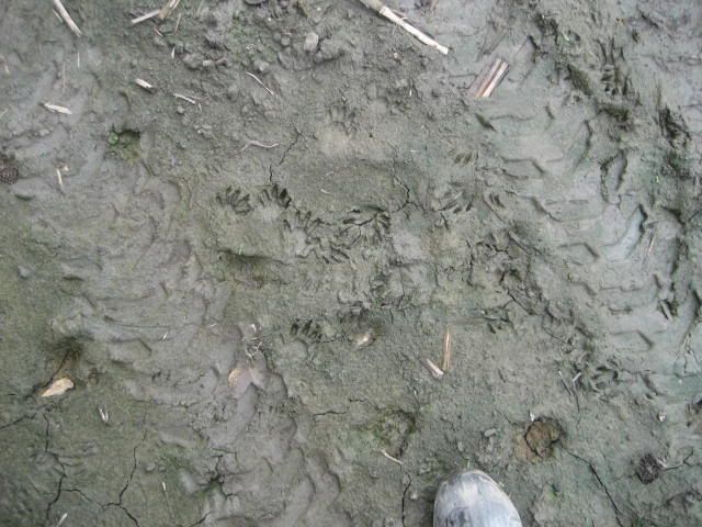 Look closely at the track. If it is a possum track,the "digit" that you would refer to as the "thumb" will be more opposed and pronounced than that of a coon. Also, the back feet of a possum will look very similar to the front,unlike a coon. Hope this helps.