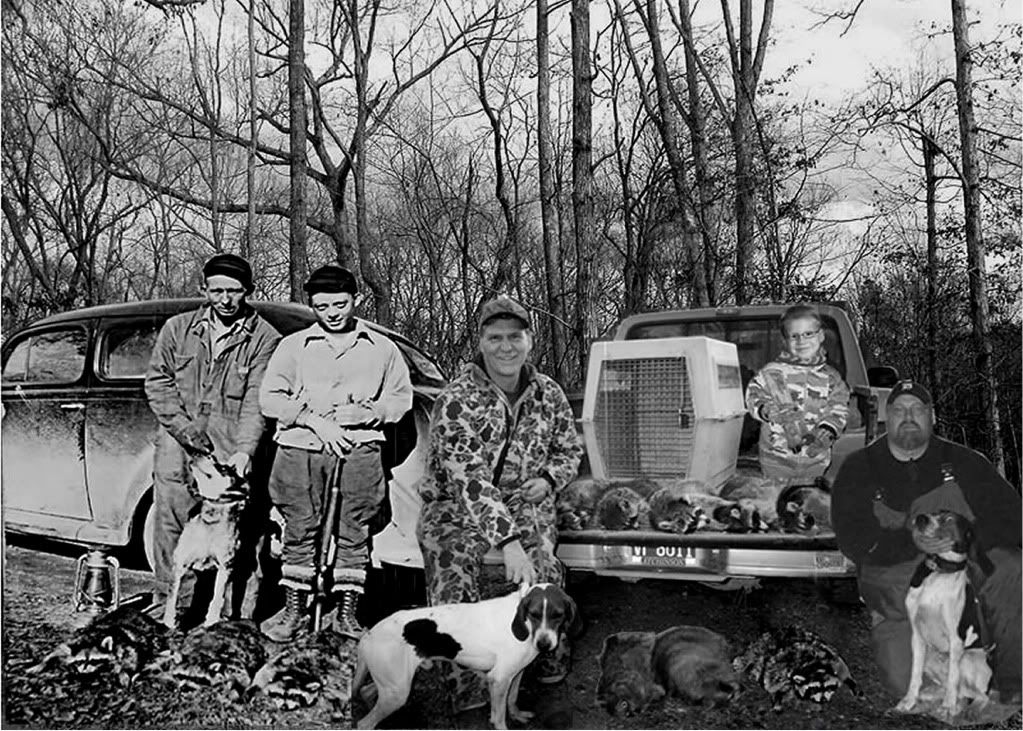 here is my photoshop pic L to R Grandad Leslie, dad richard, me ,grandson michael, son mike dogs are blue dog midnight, spot,fred