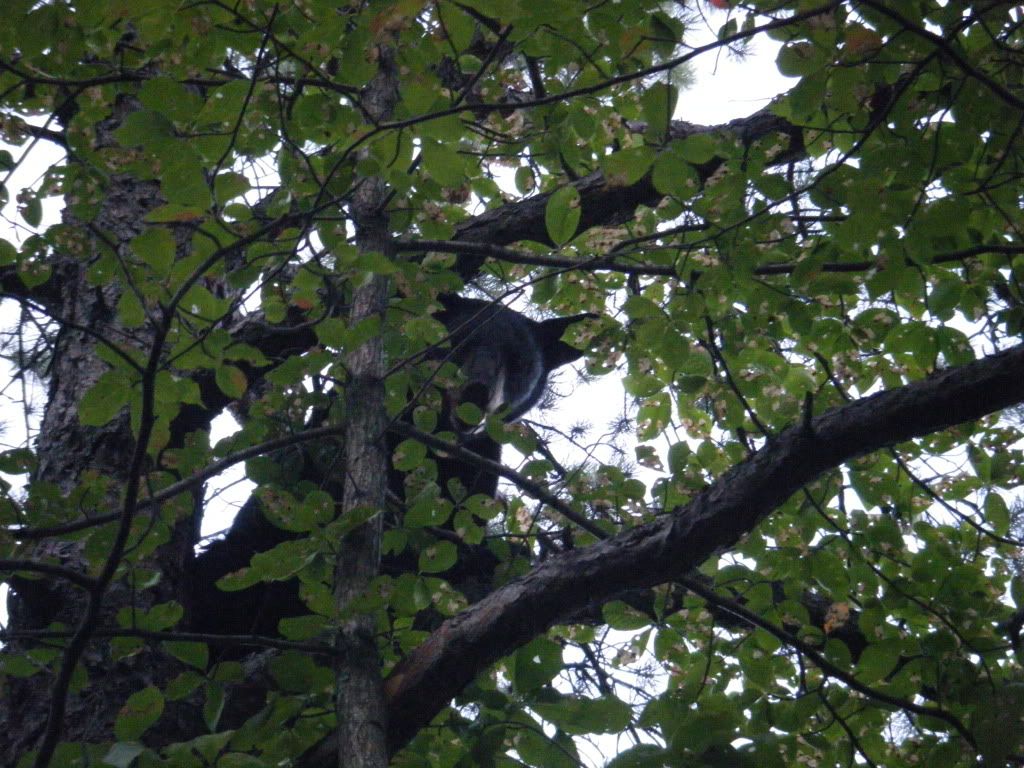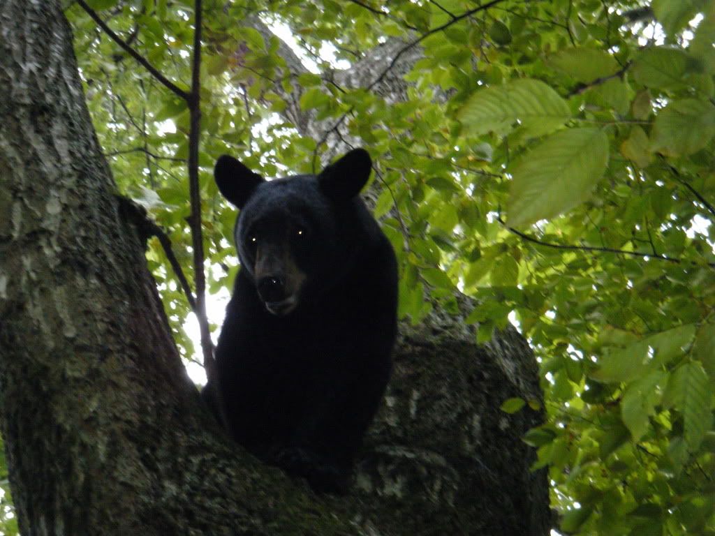 A nice bear treed in the Massanutten Mountains August of 2010. Treed by Cole McCoy, Rodney Haggerity, and Mike Baugher.
