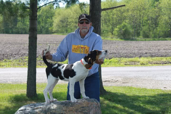 He is one damm good looking Pup. Four Months old with Loud Bawl and Chops in pen, has not started yet, but when taken to the woods he is gone with Lumber, and splits then who knows where he goes. I am going to need another Garmin DC 40 Collar to put on him before I lose him, then I will pack him along more. Like I say he is Mr. Clean x Tree Jammin' Jade off Big De. Mr. Clean & Big De have Nailor Blood up close. Nicknamed "Big Dog". He Will make it.