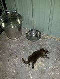 This poor guy must have been looking for something to eat or drink and decided to brave some dog's kennel. That alone would have been risky enough but to make matters worst, he chose a coon dog's kennel!