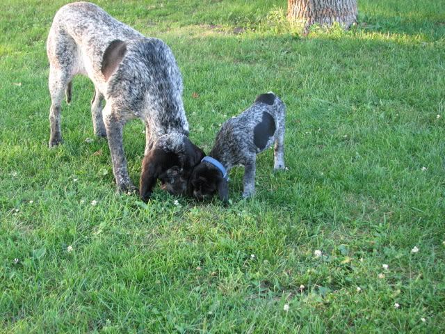 Sassy has been running and treeing with the older dogs from the first time I took her out at around 6-7 months. Started running tracks shortly there after and treed on her own at 10-11 months.