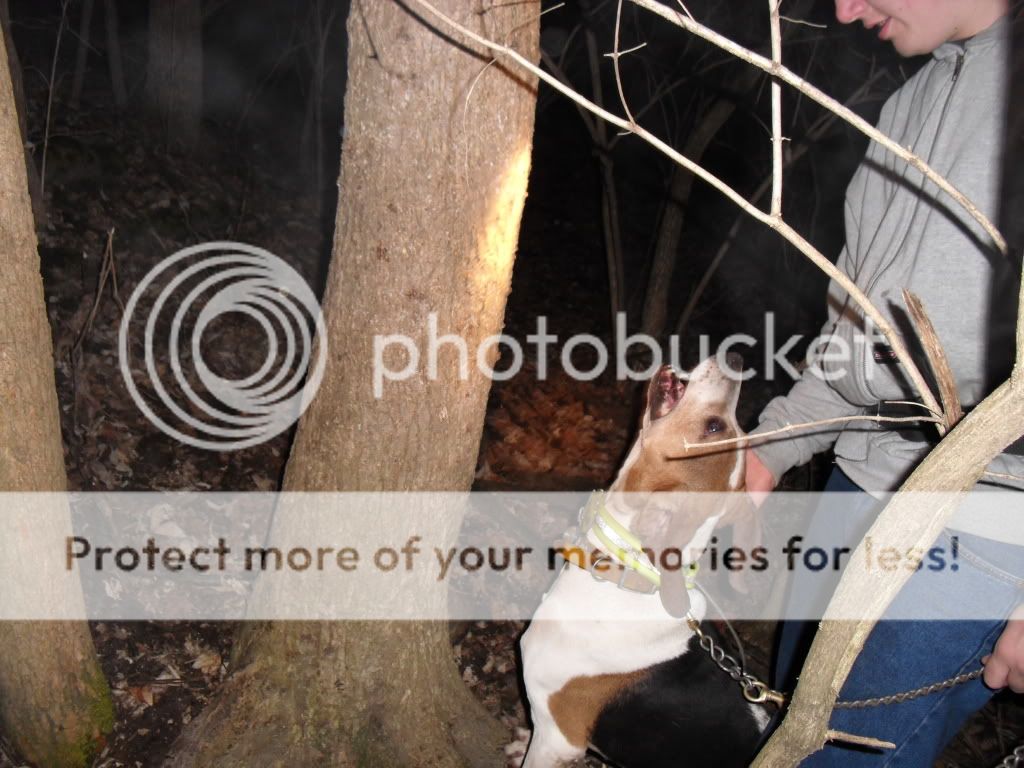 hey we need to get him out before seasons up,the last coon he treed got the frig away from us,he needs some meat,poor ol boy,he's gettin old buddy lets let him chew on some fur