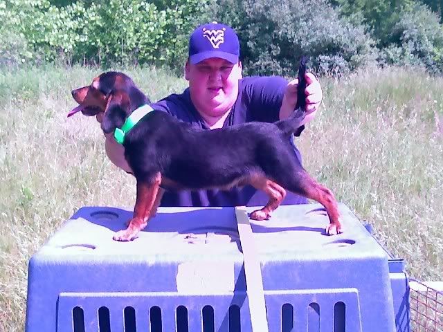 Here is a video from Maine this October. He is the first one on the line, sire of his litter was 2nd, Dam 3rd, grandmother 4th, grade dog then another relative of the others.