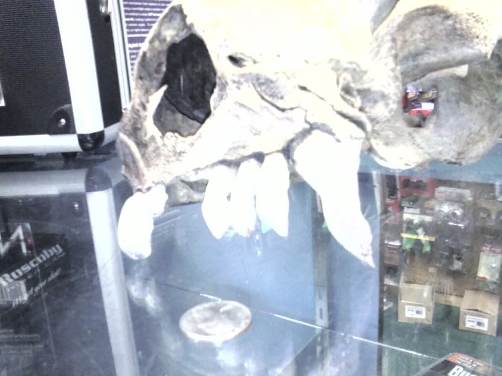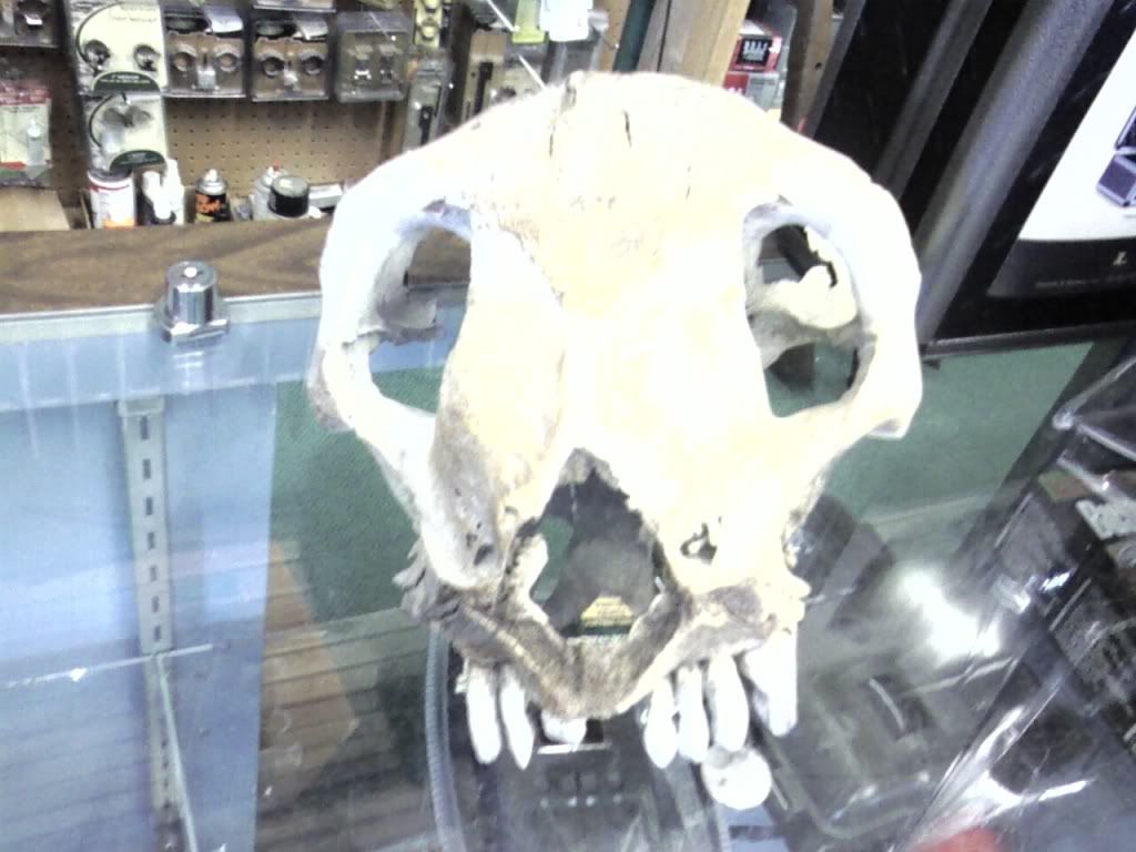 Well its not from a bear or a mt. lion or horse or pig. heres the deal this scull was found on a bear hunt and after having it for a while and no one being able to tell him what it was. he sent it off to a unaversity. To have them check it out and tell him what it was. then he never heard back from them and made call after call to see what was going on. They acted like they did not know what he was talking about. He ended up having to take them to court but got it back. They never did say what it was from. I dont think they Knew.