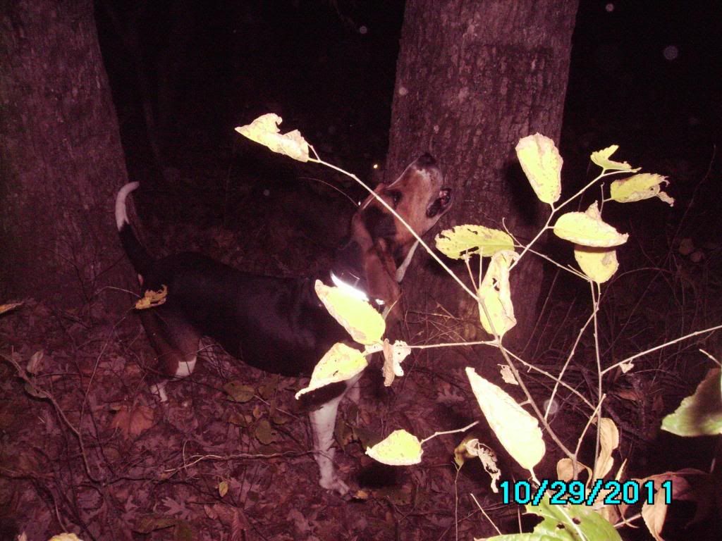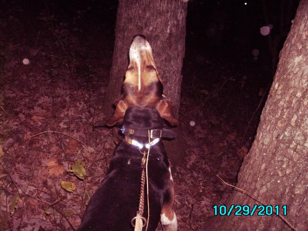 took Buddy sun.night treed a 25# on first drop ,I think he caught him on the ground for a min . He winded this big boy from the get go then was all over the log jam on the troublesm creek and then came treed with the meat . Thought I lost him at one point he jumped in went under a log came up at the roots got hung up went back under came up again still hung and finally got out finished the track .Hes a trooper . Second drop tredd 2 kittens one ran back right in front of us and treed second about 30 yrds , I guessin ole momma got the slip on him . But BABE RUTH NEVER HIT A HOME RUN EVERYTIME lmao three coon in 1 hr good times with and ole friend PRICELESS !!!!!