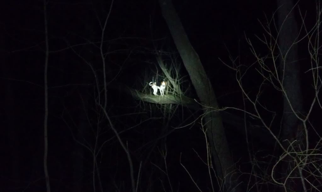 The same thing happened to me years ago in Indiana. I was hunting Bates Hardtime Kash II, he belonged to Ed Bates and myself. My cousin and myself were hunting we heard him tree, when we started to him it sounded like he moved, when we got closer we couldn't hardly tell what direction he was, we stopped and listened real good and started lookin up, there he was in a leaning tree with vines all over it. I called him down, finally, shot the coon out and felt real fortunate that I had an old hound that minded real good.