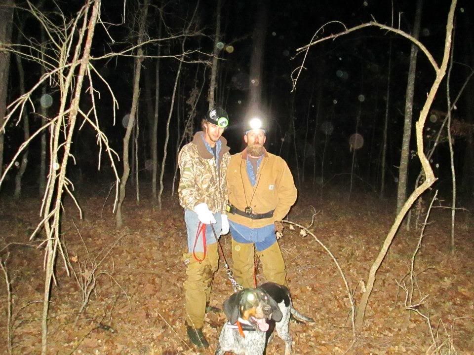 Me, my son Trey and his English dog Dan. At his first HTX hunt hosted by Southern Coon Hunters Association in Keithville, La., great group of guys!