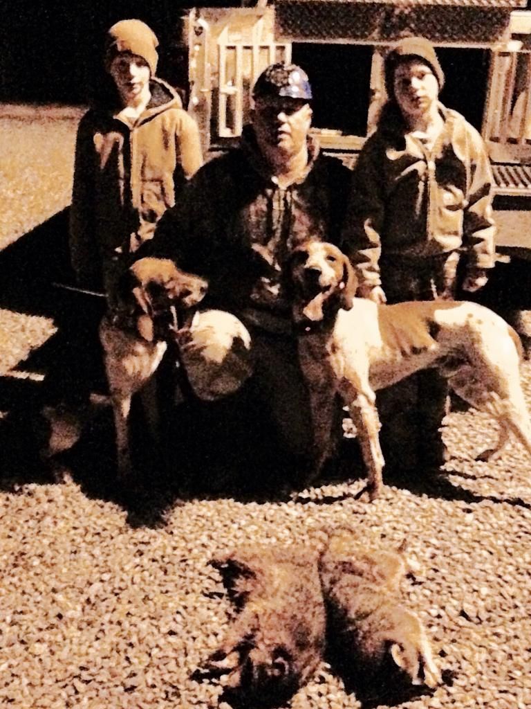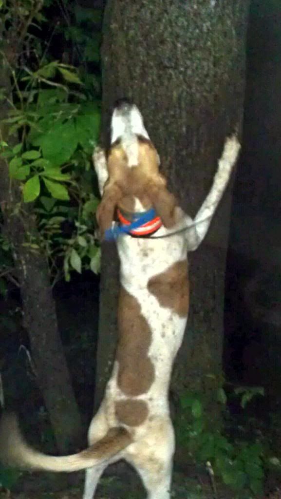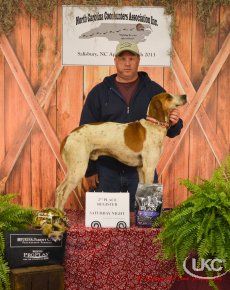 Gentlemen I would like to introduce T-Rex for Stud. He is 3 years old. Rex is a hard pressure tree dog around 85 to 95 barks per minute and will hold split treed at any distance. He is 80 pounds and is a good looking hound on the ground and in the woods. He has a chop to a bawl on track depending on how hot or cold the track is and has a dying bawl locate on tree. Rex placed fourth at United English Days in 2013 on Friday night. He also placed second at NC State Championship in 2013. He has qualifyed for the UKC World Hunt in 2013 and 2014. The best thing I like about him is he will get deep but not in a straight line; he hunts like a bird dog down one holler and up the other as he goes and when he trees, he is there until you get there and you do not have to stop and listen while going.