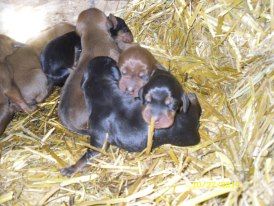 I don't believe what he says about Redbones, I had a PR litter, and I had seen 3 gen of the mother, and DNA-VIP two pups from the litter (which was out of a WLDCH show dog) that one had a light saddle back, and I also know that the particuar bloodline CAN throw a B&T. as well as this litter of PR redbones, note the 3 B&T's.