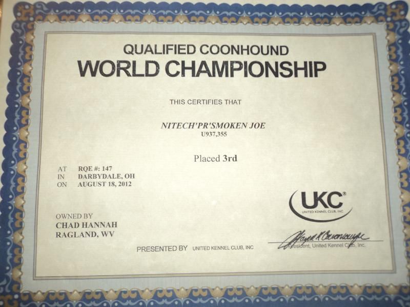 Smoke is a AKC NITECH w/ 4 wins and a UKC NITECH w/ 4 wins. Smoke will be finished to GRNITECH soon. Only reason he is not finished now we have not hunted him in any local clubs we have hunted him at all MAJOR events. We have won a majority of our cast only loosing 2 just did not have enough to get in. We plan to carry him to a local hunt this weekend.