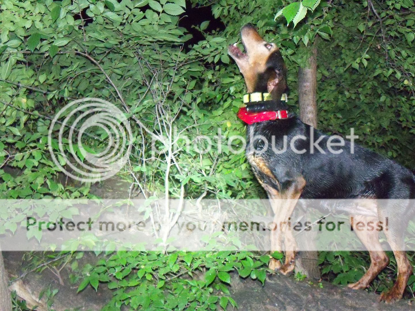 i dont leashe the dogs other than sometimes at a tree or sometimes catching at a road. if a hound isnt smart enough to learn to handle they dont stay here. with very little work hounds can have manners.