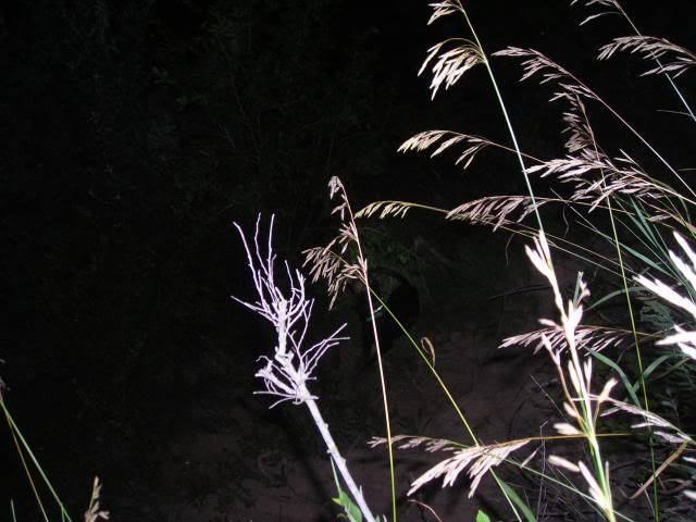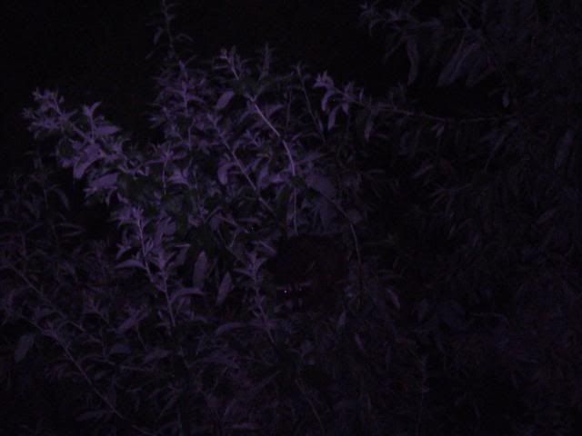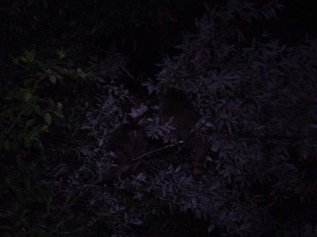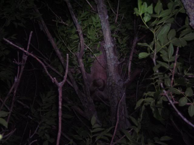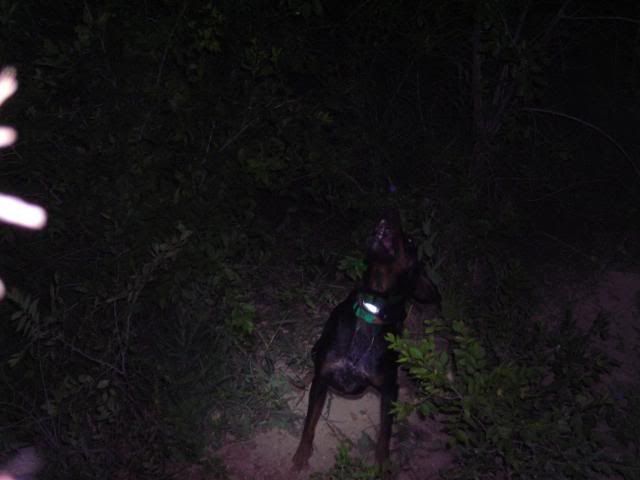 So since I've moved I haven't had a lot of time to get out in the woods and my dog is getting fat...so I figured I better get out. Was a nice night on Friday, but started to get windy by the end of the night. Anyhow hunted some new ground and did really well. Treed 6 on the first drop litter of kits and guessing the sow who was in a tree touching the bush the kits were in. It was a nice quick like 200 yard track and Clyde just smoked it. A guy can be happy with just seeing 6 in a night but I kept it up. Had a long grubber that wasn't amounting to anything on the second drop so picked up Clyde. Dropped again and ran another hot track about 600 yards and treed on a huge tree never seen coon, but leaves were really thick and was a good track so figured I'd give it to him. Going to the next spot hit a rig so dropped dog and slammed a short track and must have almost had it cuz the little bore was low in tree. Anyhow, rest of night not much happened and enough talking here are some pictures.