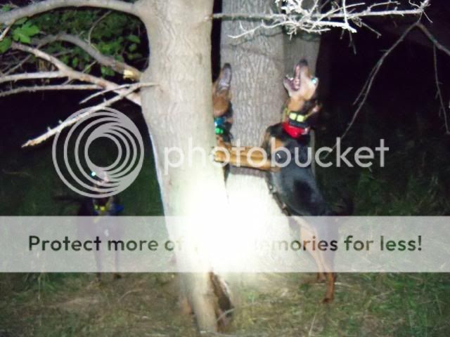 went out tonite with minn, trix, and little joe. first run tried walking trix and joe through a corn patch rite along road with no strikes. bad place to hunt so moved on quick. next drop trix and joe freecasted great with nothing and picked up on road. next dumped all 3 and dogs got track going deep and moved slow 300yd track and treed with litter in mulberry tree, finally some action!