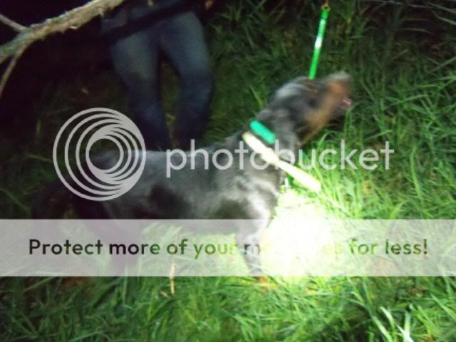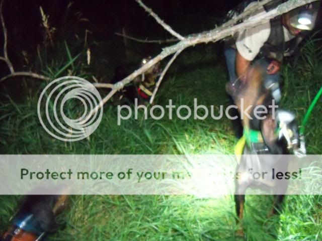 first run we treed rite before dark with 3 kits, and big storm was brewing. hunted awhile and last tree we got to, storm hit hardcore. we got soaked and lightning wasnt pretty. in between first and last drop had 1.5 mile garmin track with under ground bayup. got dogs called out and they had to swim and dunk heads to get out.