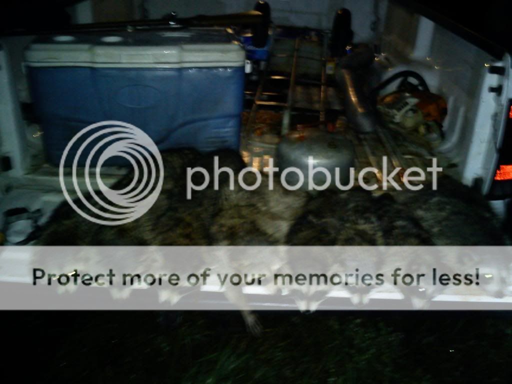 We treed 15 coons in 5 hrs one tree had two big bo coons one tree had a sow and 3 lil ones we left them....Shhhh! All the rest where singles. man it was an awesome night!!
